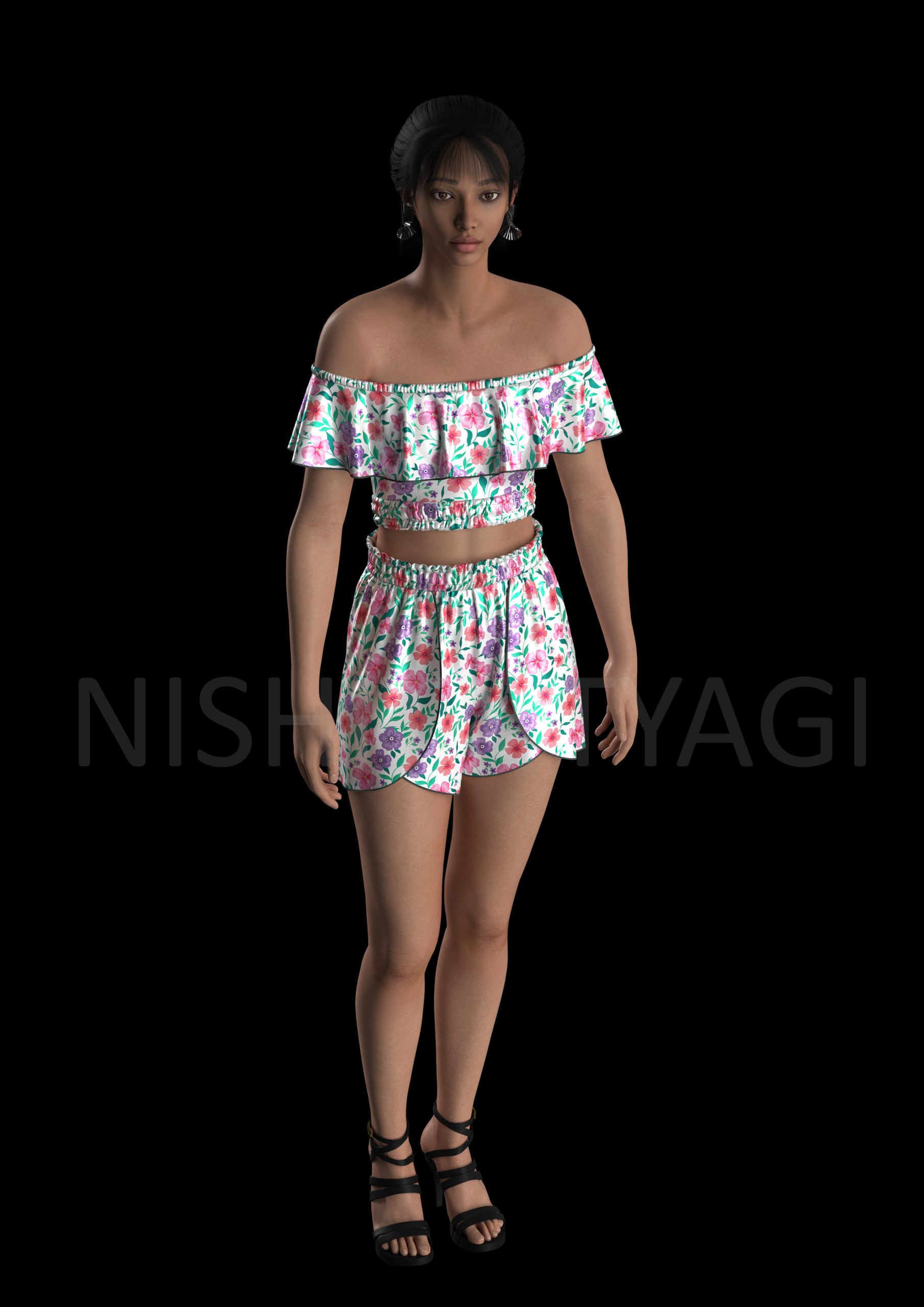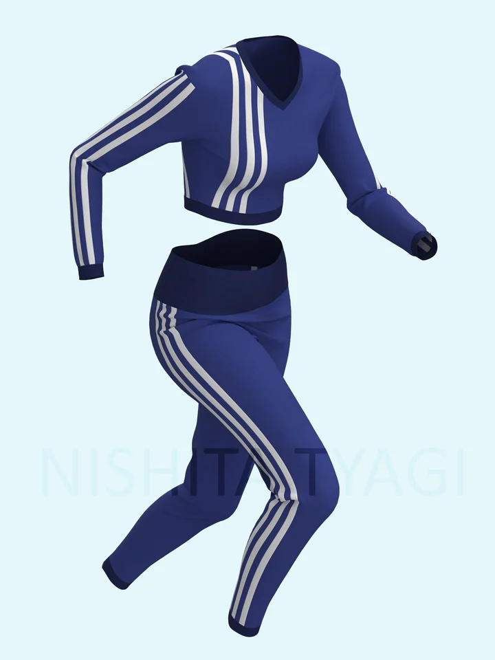 Designing garments that move, breathe, and tell a story. CLO3D garment construction, AI-enhanced final render.CLO3D Garment – Front View RenderCLO3D Garment – Side Profile RenderCLO3D Garment – Dynamic Angle RenderCLO3D Garment – Another Side Profile RenderCLO3D Garment – Close-Up Detail View Iridescent puffer Jacket paired with a textured dress, rendered in CLO3D.Double-breasted women’s formal suit created and rendered in CLO3D.Off-shoulder floral top and shorts created in CLO3D.Sportswear co-ord set designed with motion simulation in CLO3D.High-detail 3D handbag visualization created in CLO3D.Realistic 3D jacket rendering with detailed texture in CLO3D.Edgy leather harness outfit designed and rendered in CLO3D.3D uniform visualization representing Indian armed forces, created in CLO3D.