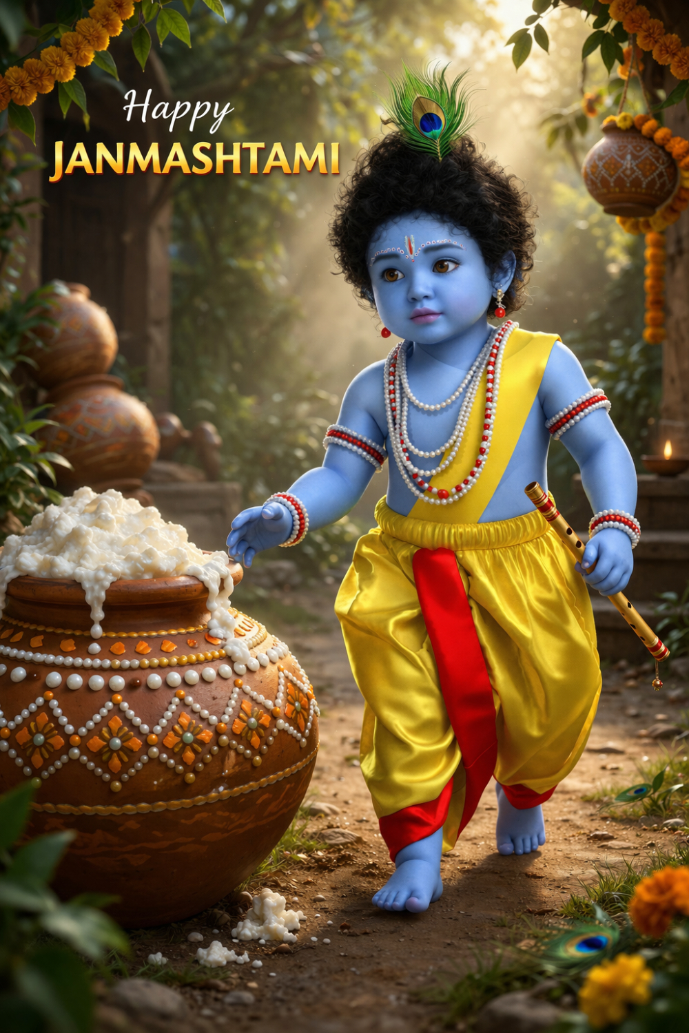 Created a traditional Krishna-inspired garment and jewellery in CLO3D, focusing on fabric realism, intricate detailing, and cultural authenticity. The final scene was enhanced using AI to build a festive visual narrative, capturing devotion, tradition, and the essence of Janmashtami through storytelling.