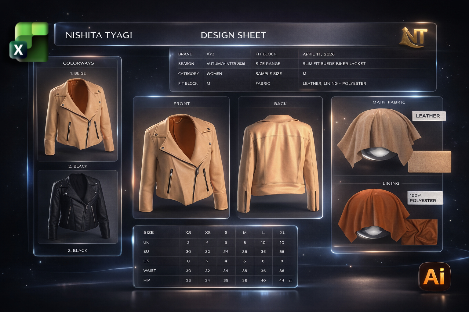 I create detailed, factory-ready tech packs that clearly communicate garment specifications to manufacturers, reducing sampling errors and production misunderstandings.